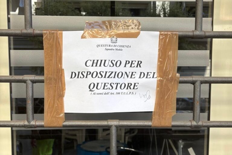 Proseguono senza sosta i controlli della Polizia di Stato nel Capoluogo e nella Provincia, disposti dal Questore di Cosenza, dott. Giuseppe Cannizzaro. Chiuso anche un esercizio commerciale in questo centro ai sensi dell’art. 100 TULPS, al fine di preservare e garantire la sicurezza dei cittadini.
