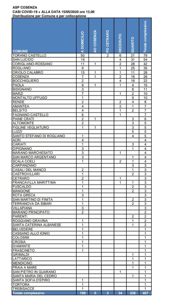 Home Cronaca 467 casi di positività nella provincia di Cosenza, eccoli comune per comuneCronaca467 casi di positività nella provincia di Cosenza, eccoli comune per comuneDa Pillamaro.it - 16 Maggio 2020877FacebookTwitterWhatsAppLinkedinTelegramCopy URL Articoli correlatiDi più dello stesso autore CronacaTragedia sfiorata, mostra la pistola all’amico e parte un colpo: giovane in prognosi riservata CronacaLa Polizia di Stato chiude due centri scommesse dove venivano effettuati prestiti irregolari ai giocatori. CronacaForestali, la Corte d’Appello dà torto a Calabria Verde: “Sì ai rimborsi chilometrici, illegittimi i tagli forfettari”Post della settimanaDiamante, anche i Centrini Natalizi al centro della polemica, l’appello: «Fermate... 2 Dicembre 2025Ermanno Cennamo nominato Ambasciatore delle Reti Marciane: Cetraro consolida il proprio... 30 Novembre 2025Grande paura nel Cosentino. Camion sbanda e finisce in un bar 2 Dicembre 2025Al Reparto di Medicina Lungodegenza dell’Ospedale di Cetraro: «Grazie per quello... 5 Dicembre 2025Rosellina Madeo (Pd): «Superare le divisioni interne per tornare alla maggioranza» 5 Dicembre 2025