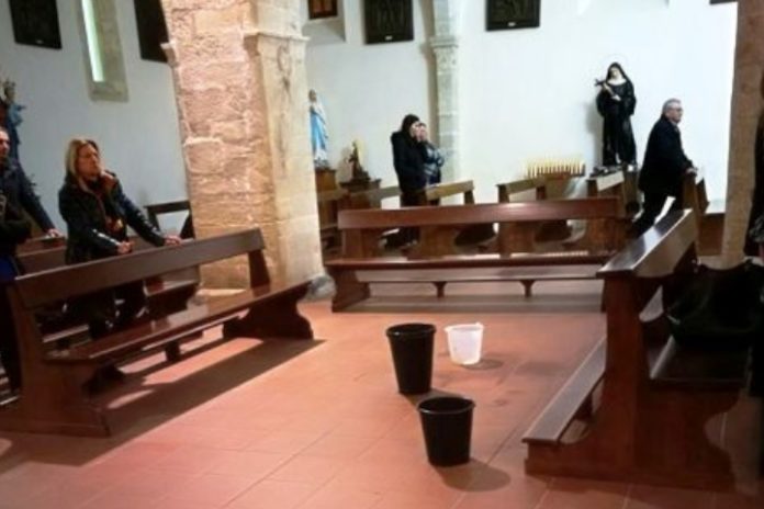 Amantea, arriva dal web la foto di tre secchi nella chiesa di San Bernardino. Piove nella struttura ed i Fedeli sono costretti a pregare tra i disagi.