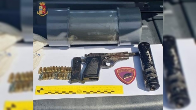 Le indagini, coordinate dalla Procura della Repubblica presso il Tribunale di Palmi, hanno portato al rinvenimento di una pistola, completa di munizionamento e silenziatore, all’interno del fondo agricolo di proprietà dell’uomo.