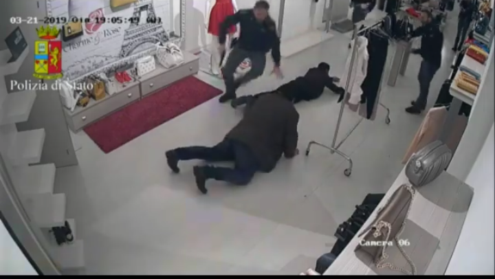 Immediato l’intervento degli Agenti della Polizia di Stato che hanno fatto irruzione all’interno dell’attività commerciale intimando ai due soggetti di desistere dal loro intento criminoso. Gli Agenti, con sangue freddo e determinazione riuscivano a disarmare il 41enne armato di coltello ed ammanettarlo.