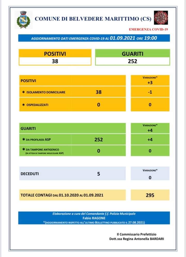 Di seguito, i bollettini diramati nei vari comuni, nella giornata di ieri.
