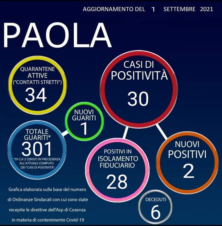 C’è apprensione sul Tirreno Cosentino, a causa della crescita dei contagi nei principali comuni del Litorale. Scalea, Praia, Belvedere Marittimo e Paola sono centri dove il virus cammina, strettamente e continuamente monitorati. A Cetraro registrato il caso di positività, nella giornata di ieri, di un turista. A Diamante, cambia il calendario del Centro Vaccinale, Palestra Parco Enzo La Valva. (Venerdì dalle ore 15:00 alle ore 19:00; Sabato dalle ore 09:00 alle ore 13:00). A Longobardi preoccupano i circa 50 casi di positività riscontrati in una RSA del posto, tra ospiti e personale sanitario.