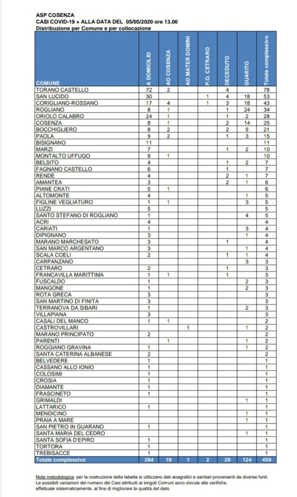 Restano 459 i pazienti della Provincia Di Cosenza positivi al Coronavirus. Cresce il numero dei guariti. Sono 124, diciotto dei quali a San Lucido.