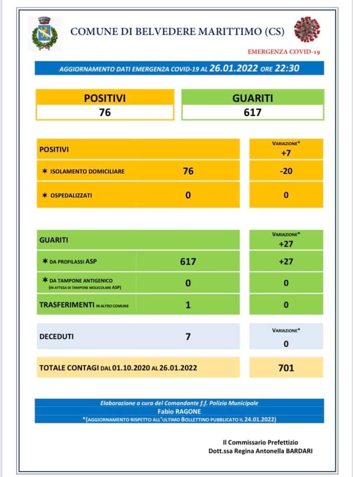 L’ultimo bollettino epidemiologico legato ai casi di positività al Sars-CoV2 sorride ai comuni di Diamante e Belvedere Marittimo, così come a tutta la riviera dei Cedri.