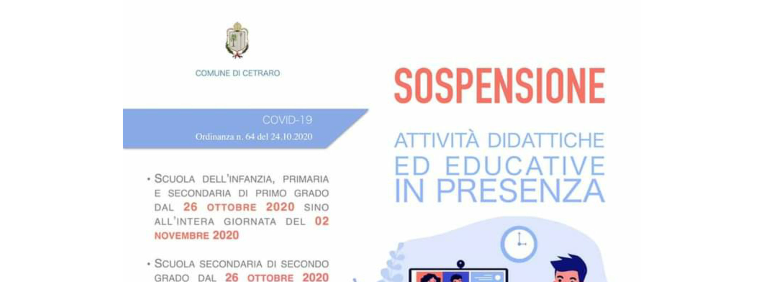 ORDINA su tutto Il territorio comunale. la sospensione delle attività didattiche ed educative in presenza per come dl seguito indicato: