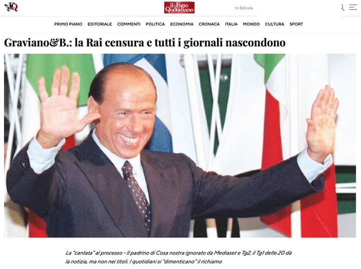 “Giuseppe Graviano parla al processo “’Ndrangheta stragista” di Reggio Calabria, fa il nome di Silvio Berlusconi, “incontrato tre volte mentre ero latitante”, ma la notizia non trova spazio nei titoli dei tg della sera (eccetto Mentana) e sulle prime pagine di quasi tutti i giornali (solo Il Fatto Quotidiano dà il giusto risalto alla cosa).