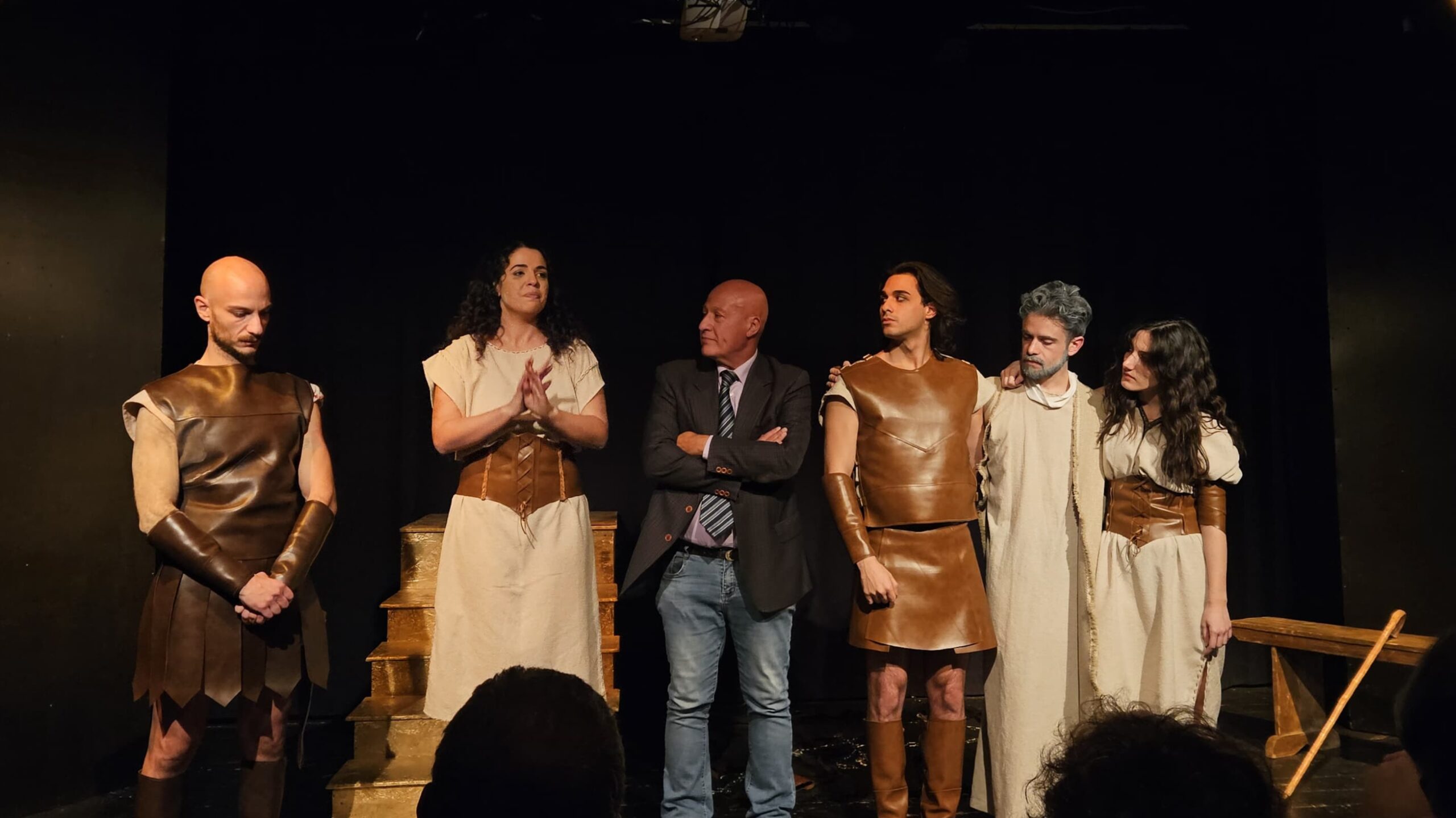 I temi affrontati – l’assurdità della guerra, la violenza sulle donne, il conflitto tra giustizia umana e divina – risuonano con forza nel nostro presente, dimostrando che il teatro, quando è vero, non invecchia mai. Il testo, in un atto unico, si sviluppa come un coro di destini intrecciati: Niobe (Annalisa Crispino), madre ferita e donna in catene, vittima della superbia e della vendetta divina, colpevole solo di aver sfidato la dea Latona e punita con la perdita dei suoi figli. Tiresia(Giuseppe Cozza), il veggente cieco che conosce la verità ma è condannato a non poterla dire. Ecuba (Francesca Sciacca), la troiana che incarna la disperazione e la forza di tutte le donne violate dalla guerra, porta in grembo la memoria della violenza. Eudemo (Daniele Sicilia), soldato cresciuto nella convinzione che la libertà passi dal sangue. Etico (Emanuele Novello), saggio e innamorato, che tenta di salvare una vita come atto di redenzione.