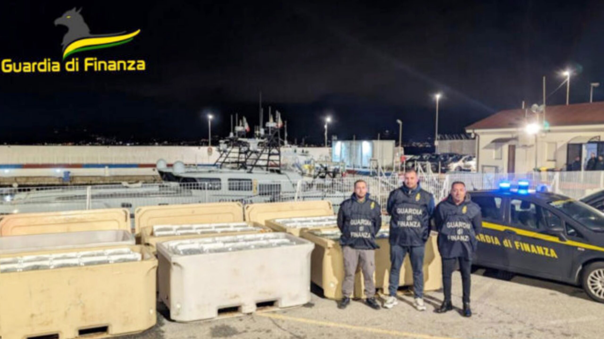 Le fiamme gialle della Sezione Operativa Navale di Reggio Calabria, nell’ambito di un apposito piano coordinato dei servizi di polizia economico finanziaria a contrasto della pesca di frodo e a tutela dei consumatori, disposto dal Reparto Operativo Aeronavale di Vibo Valentia, ancora in corso di svolgimento su tutto il territorio calabrese, congiuntamente alla Compagnia di Villa San Giovanni e alla componente cinofila della Compagnia Pronto Impiego di Reggio Calabria, all’esito di una oculata attività informativa condotta anche mediante puntuali servizi di osservazione, hanno intercettato e sottoposto a controllo un mezzo autoarticolato, al cui interno vi era occultata un’ingente quantità di prodotto ittico, priva di ogni documento attestante la provenienza, in procinto di imbarcarsi per la Sicilia.