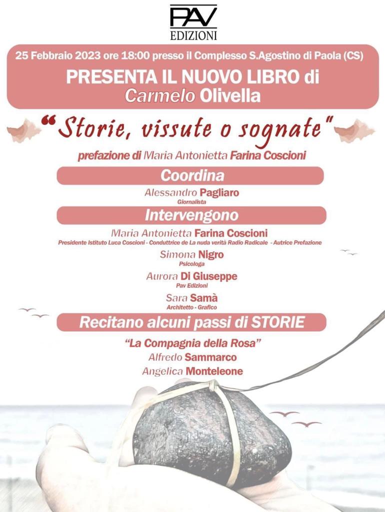 PAOLA-Sabato 25 Febbraio alle ore 18:00 presso il complesso del S. Agostino di Paola, presentazione del libro di Carmelo Olivella: Storie, vissute o sognate.