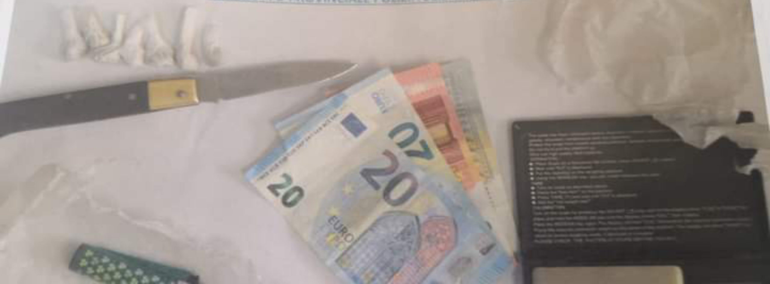 Introdottisi nell’abitazione del soggetto, i poliziotti hanno rinvenuto su un tavolo e all’interno di alcuni mobili, ben 7 dosi di sostanza stupefacente, queste ultime nascoste all’interno di un pacchetto di sigarette, materiale da confezionamento, un coltello, alcune banconote e un bilancino di precisione perfettamente funzionante.