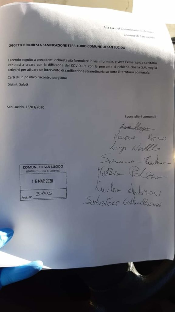 (A San Lucido, è bene ricordare, c’è un caso positivo al virus, ora in ospedale sotto stretto controllo dei medici)