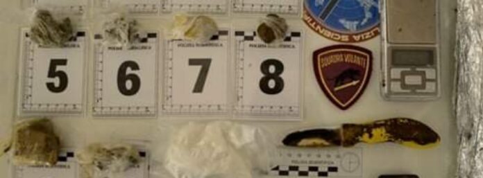 Lo scorso fine settimana la Squadra Volante ha tratto in arresto G.G. trovato in possesso di una notevole quantità di sostanze stupefacenti. Al termine dell’udienza di convalida, il reo è stato condotto in carcere su disposizione del Giudice procedente. Durante mirati servizi di controllo del territorio, una pattuglia della Squadra Volante notava nei pressi del quartiere Piano Casa una Fiat Punto procedere a velocità sostenuta dirigersi verso nord guidata da G.G., soggetto pregiudicato noto agli Agenti per i suoi numerosi precedenti specifici di polizia.Intimato l’Alt, fermavano il veicolo per il controllo. Insospettiti dall’insofferente comportamento del giovane, veniva effettuata la perquisizione personale e del veicolo, rinvenendo una scatola blu con all’interno una busta sottovuoto contenente un consistente quantitativo di sostanza stupefacente presumibilmente di tipo cocaina. Con l’ausilio di altre pattuglie della Volante, il controllo proseguiva con la perquisizione domiciliare che, permetteva di rinvenire, occultati in diversi punti dell’abitazione, ulteriori quantitativi di sostanze stupefacenti, suddivisa in più involucri, due bilancini di precisione perfettamente funzionanti e un coltello intrisi di sostanza stupefacenti. Il tutto è stato posto in sequestro. Tutte le sostanze sono state sottoposte alla analisi di laboratorio del Gabinetto Provinciale di Polizia Scientifica, che ne ha confermato la natura di stupefacenti delle sostanze e la quantità complessive di: grammi 19 di marijuana; 62,48 grammi di hashish e 55,26 grammi di cocaina. Nell’immediato G.G. veniva dichiarato in arresto e su disposizione del P.M. di turno veniva sottoposto ai domiciliari. Nella successiva udienza di convalida il GIP, alla luce dei gravi indizi di colpevolezza ed al rischio di reiterazione dei reati, ha disposto la misura cautelare di custodia in carcere, eseguita dalla Squadra Volante, che ha condotto il 33enne nella casa Circondariale di Siano.