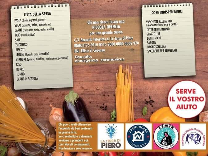 Per favore, chi può ci aiuti attraverso l’acquisto de beni contenuti in questa lista. Se ci contattate o chiamate veniamo a prenderli noi, con i dovuti accorgimenti. Non lasciamo solo nessuno.