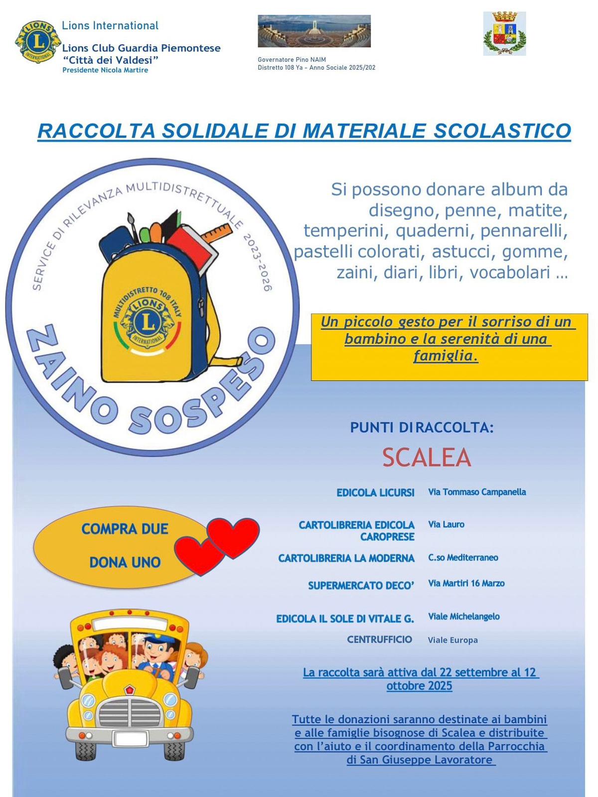 - Punti di raccolta: i contenitori per le donazioni si trovano presso le cartolibrerie e negozi di cancelleria del comune di Scalea.