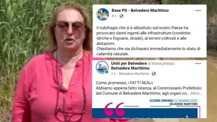 Accade che, in un post Facebook, Riccardo Ugolino parte di quella Base PD ormai commissariata, proponga la richiesta dello stato di Calamità naturale a seguito dei grandi disagi provocati dalla bomba d’acqua e dal dissesto idrogeologico nella giornata di ieri a Belvedere Marittimo. Dopo qualche ora, Uniti per Belvedere, sembrebbe recepire il messaggio ugoliniano, facendo proprie le tesi della base PD. Dopo l’ennesima probabile stoccata a Cascini “Come promesso, i fatti reali”, ormai consuetudine di questa campagna elettorale, i felicettiani hanno reso noto inoltre: “Abbiamo appena fatto istanza, al Commissario Prefettizio del Comune di Belvedere Marittimo, agli organi competenti, della dichiarazione dello Stato di Calamità Naturale a carico dell’intero nostro territorio comunale in seguito agli eccezionali eventi atmosferici dello scorso 29 Maggio.