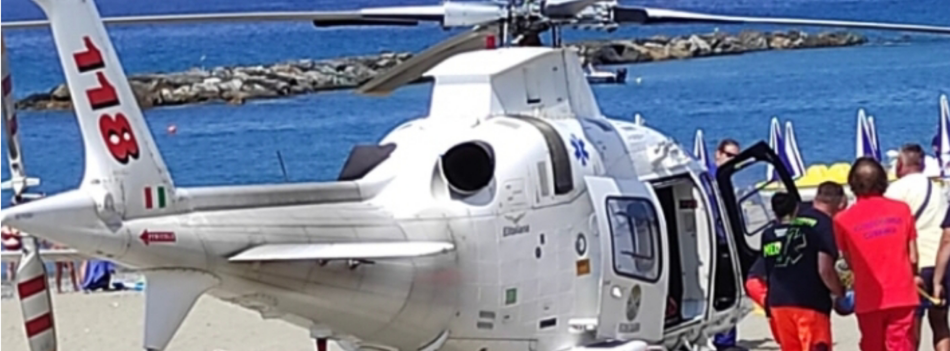 Un turista campano, mentre era in acqua e stava effettuando una nuotata ha sentito un forte dolore al petto. Si trattava di un infarto al miocardio. Immediatamente sono scattati i soccorsi. Il bagnino dello stabilimento balneare dell’Hotel Belvedere, Michelangelo Cammarella, ha provveduto a mettere in sicurezza l’uomo, mentre il medico, la dottoressa Fulvia de Luca, che si trovava nei pressi ha provveduto a prestare i primi soccorsi. Il mezzo del 118, l’elisoccorso (nella foto mentre caricano il malato) dopo aver effettuato un atterraggio sulla spiaggia, ha trasportato l’uomo all’Annunziata di Cosenza.