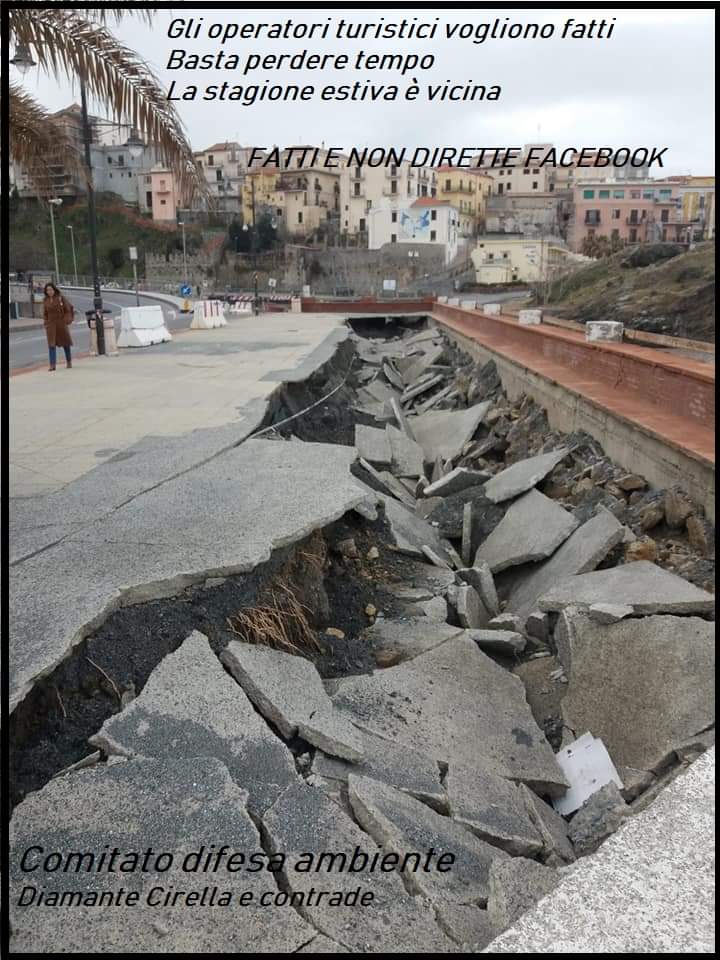 “Come tutti i cittadini avranno potuto notare a distanza di mesi dalla mareggiata e dalla distruzione del lungomare non è stata fatta LA NECESSARIA MESSA IN SICUREZZA dell’area disastrata lasciando il passaggio pericolosamente libero” Questa la polemica sollevata dal comitato di difesa dell’ambiente al sindaco di Diamante, senatore Ernesto Magorno.