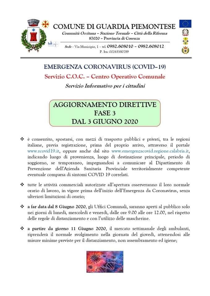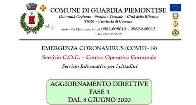 Questo é il commento del primo cittadino di Guardia Piemontese “Il virus ovviamente non è stato debellato e pertanto vi invito comunque a rispettare i pochi divieti che sono ancora rimasti in vigore. Questo sarà l’unico modo per affrontare al meglio e con sicurezza anche l’affluenza dei nuovi arrivi”. Di seguito ecco l’ordinanza