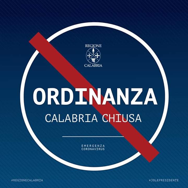 Si potrà entrare o uscire dalla Calabria solo per spostamenti derivanti da comprovate esigenze lavorative legate all’offerta di servizi essenziali oppure per gravi motivi di salute.