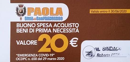 “A partire da mercoledì 8 Aprile, presso gli uffici del Sant’Agostino, è stato possibile ritirare i Buoni Spesa messi a disposizione dal comune di Paola.