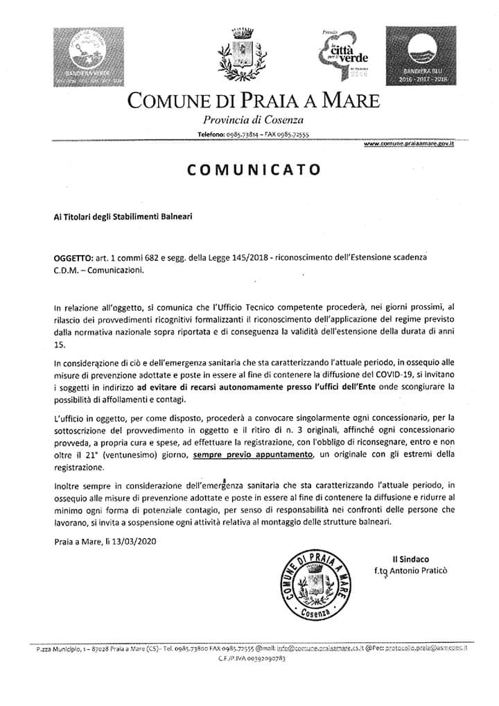 si allega), è stato comunicato a tutti i titolari delle concessioni demaniali