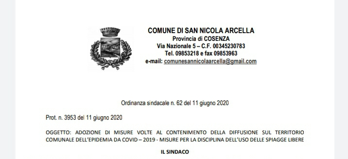 Il sindaco di San Nicola Arcella, Barbara Mele, Per la stagione estiva 2020, nel rispetto dei protocolli anticontagio Covid 19, le spiagge libere sono così
