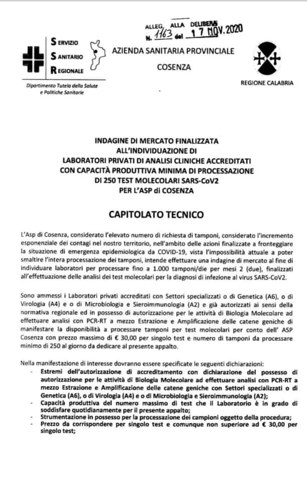 “Mio malgrado devo nuovamente rendere noto l’ennesimo paradosso verificatosi nella gestione della sanità calabrese. Nello specifico, ho appreso che l’Asp di Cosenza ha avviato una ricerca per laboratori privati al fine di processare i tamponi anziché potenziare quelli pubblici”. È quanto afferma con coraggio il vicepresidente della commissione regionale contro la ‘Ndrangheta, Graziano Di Natale, che così prosegue nell’ennesima denuncia pubblica: “C’è gente in casa da settimane che attende l’esito del tampone. Un laboratorio di analisi, come quello dell’Ospedale di Cosenza, con tanti professionisti che operano con sacrificio ed abnegazione, che non regge la grande mole di lavoro e anziché potenziare la sanità pubblica si sceglie, ancora una volta, quella privata. É l’ennesima cattiva gestione di questa emergenza e del sistema sanitario. Dimostrazione lampante di approssimazione e menefreghismo. Ancora un volta vengono spesi soldi pubblici per investire nei privati. Questa é la cruda realtà”.