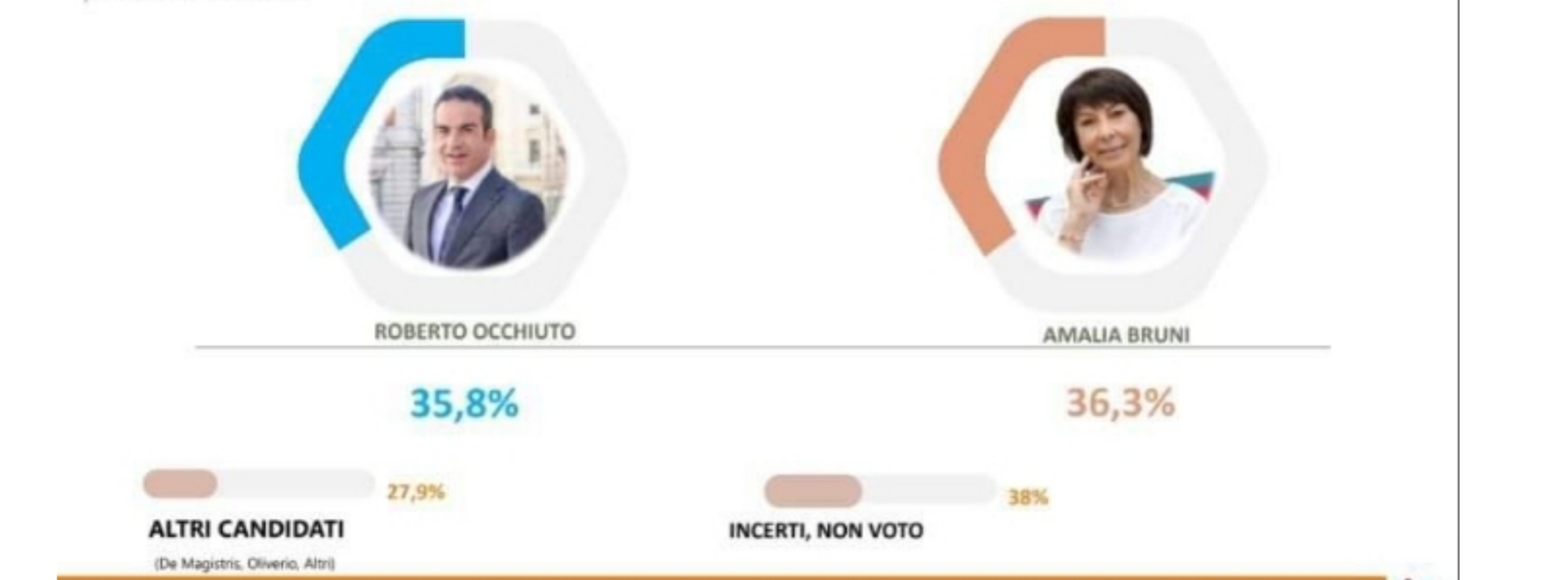 In vista delle elezioni regionali in Calabria, un sondaggio Winpoll fa emergere un testa a testa tra i due candidati favoriti, Roberto Occhiuto (35,8%) del centrodestra e Amalia Bruni (36,3%) del centrosinistra. Con un leggero vantaggio di quest’ultima.