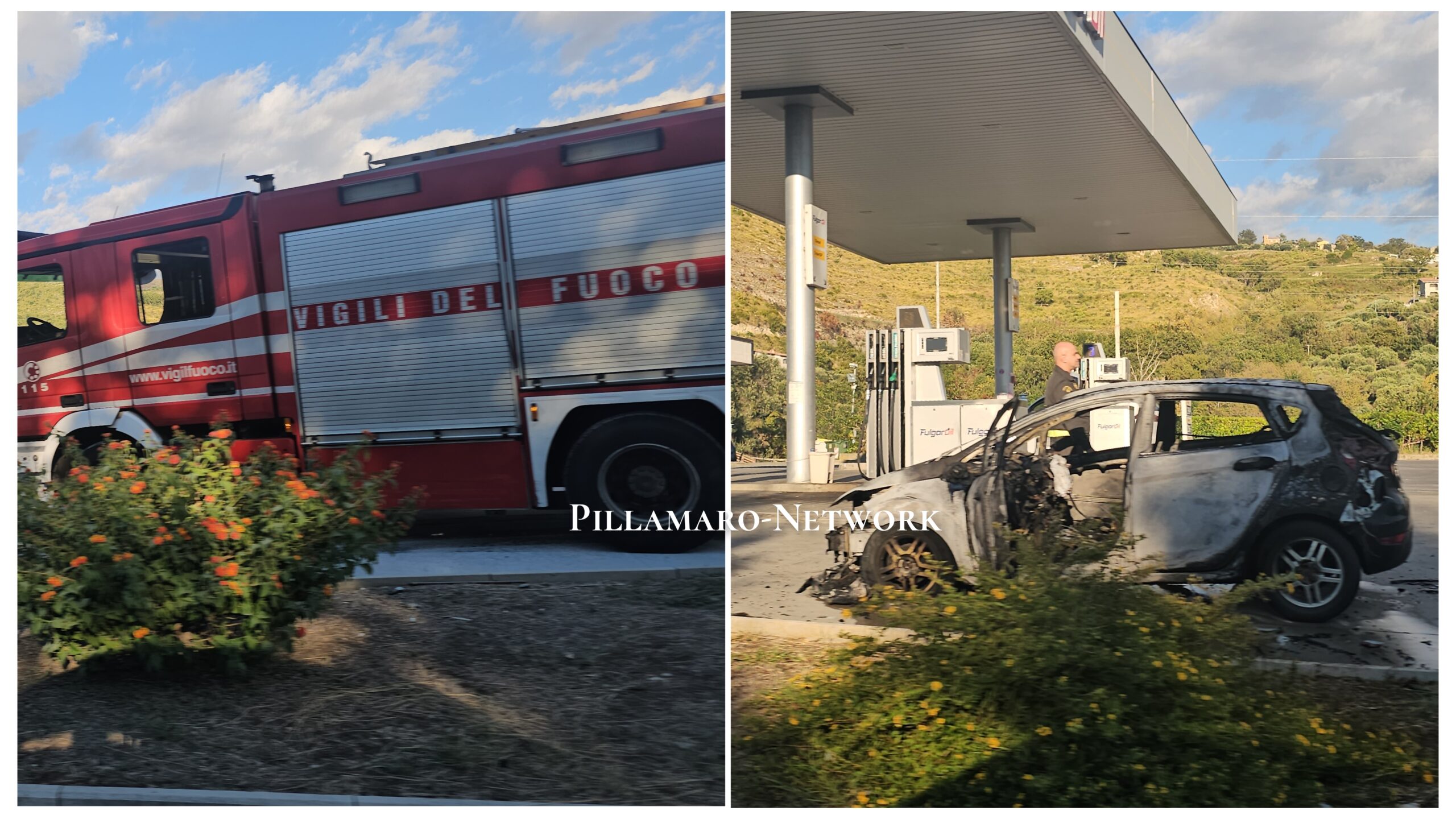 BELVEDERE MARITTIMO- Una vettura, una utilitaria, completamente distrutta dalle fiamme a Belvedere Marittimo, nei pressi della Strada Statale 18 Tirrenia Inferiore. Ferma in una nota stazione di rifornimento che lambisce l’arteria stradale che attraversa anche il comune della Riviera dei Cedri.